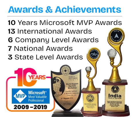 25 years of IT field experience worked with US, UK, Japan, and Australian clients. Bagged 13 International Level, 6 Company Level, 7 National Level, 3 State Level awards during his Professional career that includes the prominent Microsoft Awards.